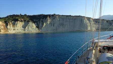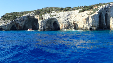 Départ avec du vent, nous voila à 11h devant la "grotte bleue", attraction touristique de l'ile