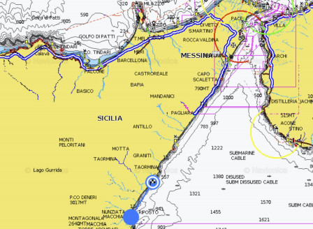Mouillage nocturne dans l'avant-port de Naxos, à l'abri d'une jetée