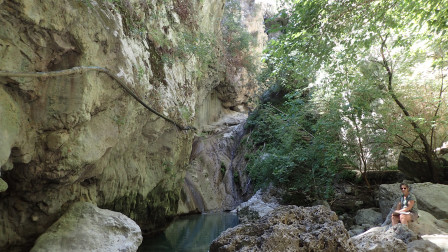 La cascade est toute petite, et l'eau à son pied plus étroite que la piscine d'Alain. Un groupe de 5 italiens y tient à peine!