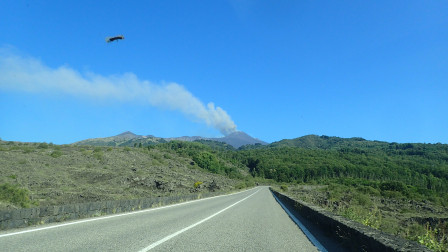 Avec notre voiture de location, première étape, le refuge Sapienza à 1910m d'altitude. Ce matin, le volcan crache bien de la fumée