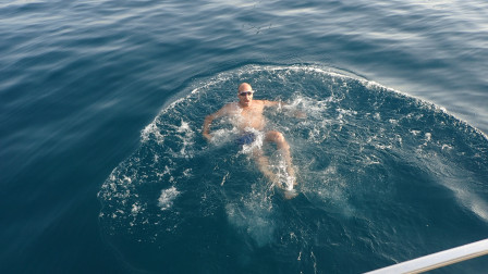 Lever et baignade matinale pour Philippe avant le depart
