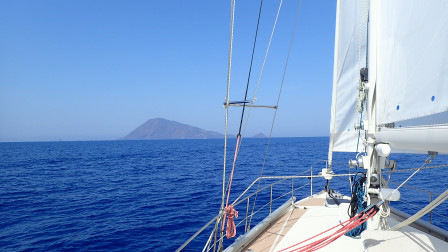Le vent est nord de 4 à 8kn, ce qui nous permet d'avancer (un peu) à la voile. Mais globalement, c'est encore beaucoup de moteur