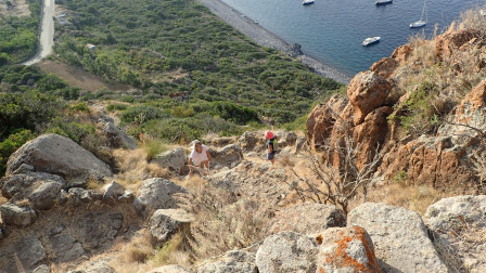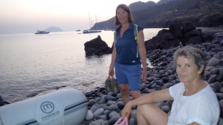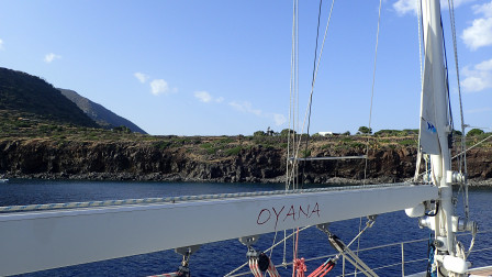 Arrivés sur la cote sud de Filicudi, cote rocheuse avec de l'eau claire