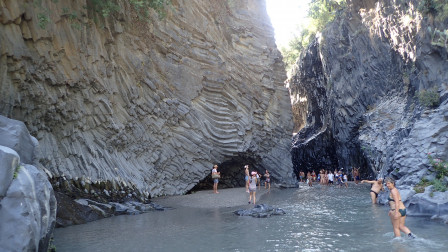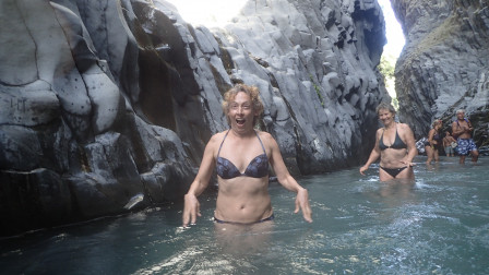 les gorges de l'Alcantara sont situées à quelques dizaines de kilomètres de notre mouillage. On ne peut résister à la tentation de trouver de "l'eau froide"