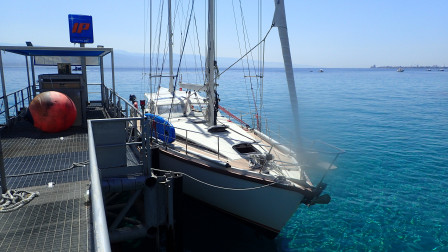 A 11:00, arrêt au ponton fuel de Paradiso-Sacnne. le courant contraire est de 2kn