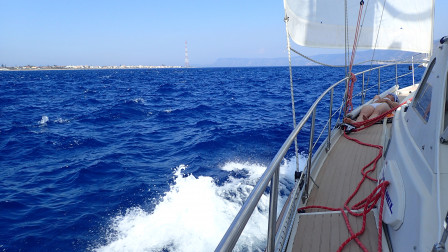 Partis à 6:00 au moteur sur une mer d'huile, nous avançons rapidement vers Messine