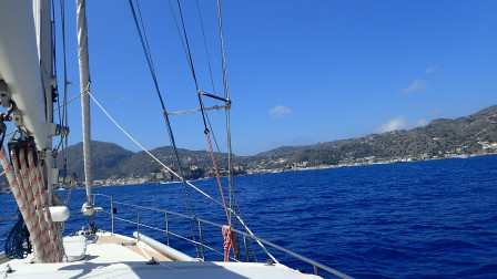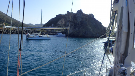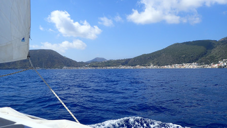 ça ne dure pas et on arrive à la ville de Lipari au moteur.