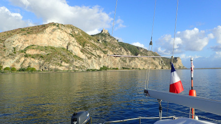 Après une nuit calme au mouillage au pied du sanctuaire de Tindari, le soleil se lève.